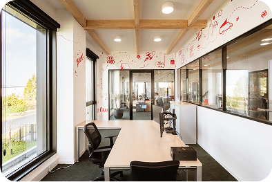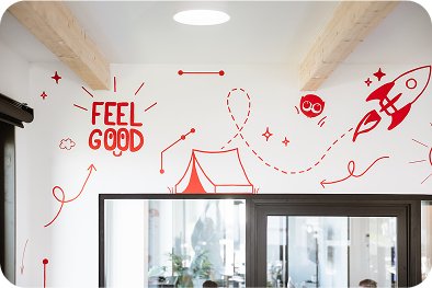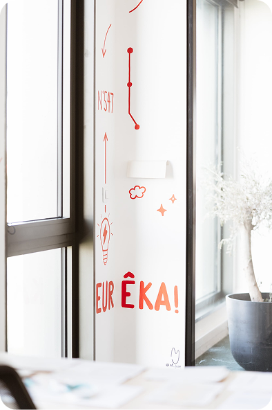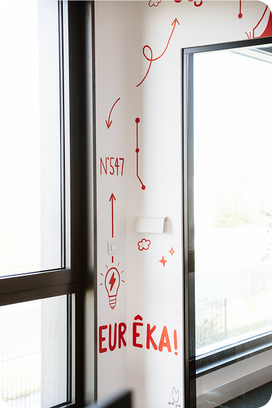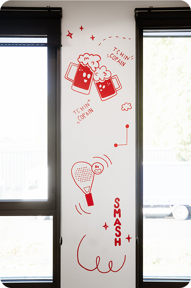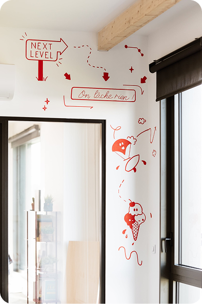 Pour cette entreprise, j’ai réalisé deux fresques, chacune pensée en lien avec la