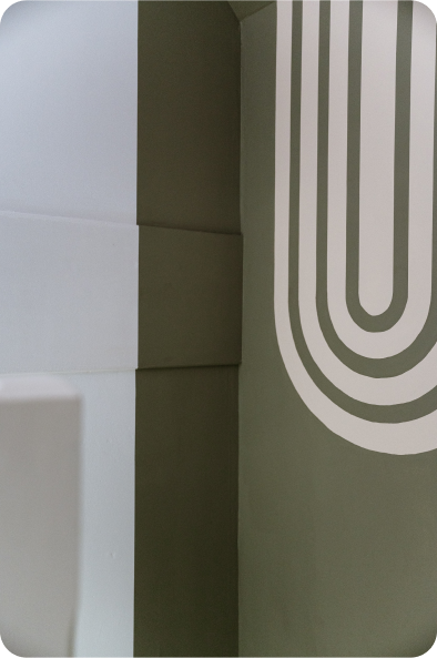 Pour cette fresque, j'ai travaillé avec un cadrage coloré, ou une 'boîte de couleur', afin de mettre en valeur la composition et de structurer l'espace. Ce choix accentue l'impression de profondeur, donnant l'illusion que le palier est plus grand. Les teintes choisies apportent du dynamisme et harmonisent l'ensemble, tout en créant un contraste interéssant avec les murs environnants.