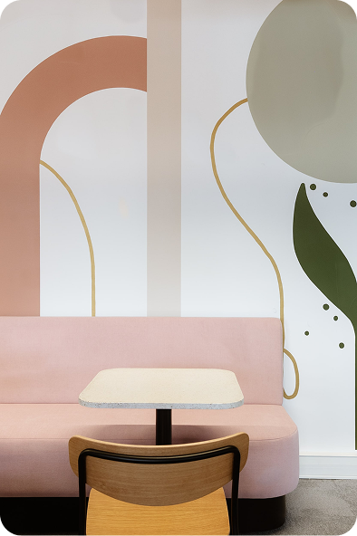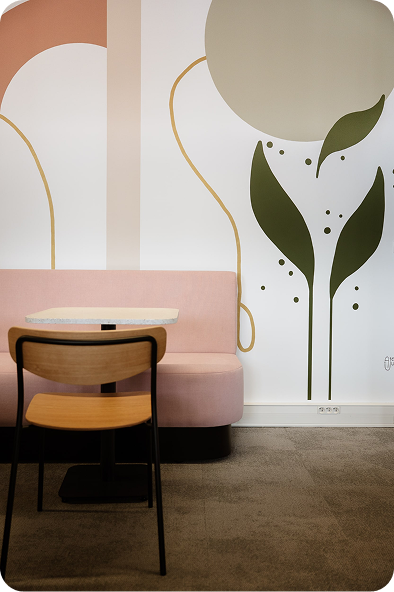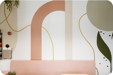 géométriques et organiques, en laissant des respirations sur le mur pour ne pas
