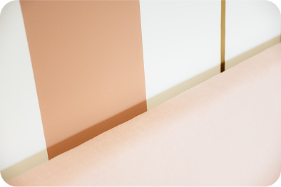 avec les matériaux déjà présents, comme le chêne clair du mobilier, le tissu
