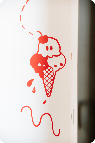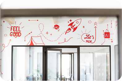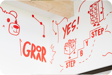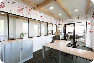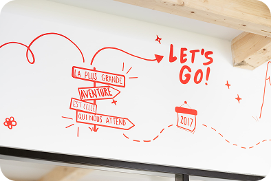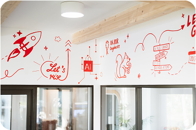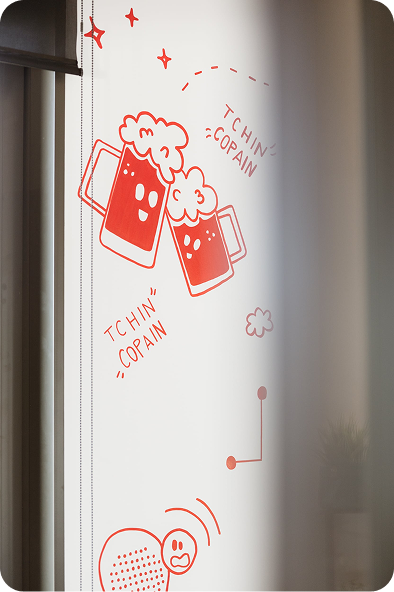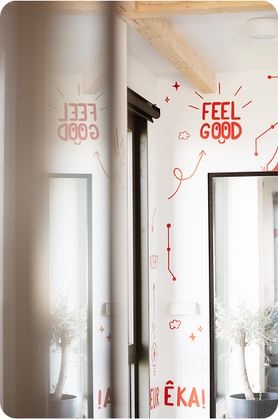 Pour cette entreprise, j’ai réalisé deux fresques, chacune pensée en lien avec la