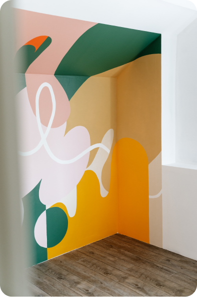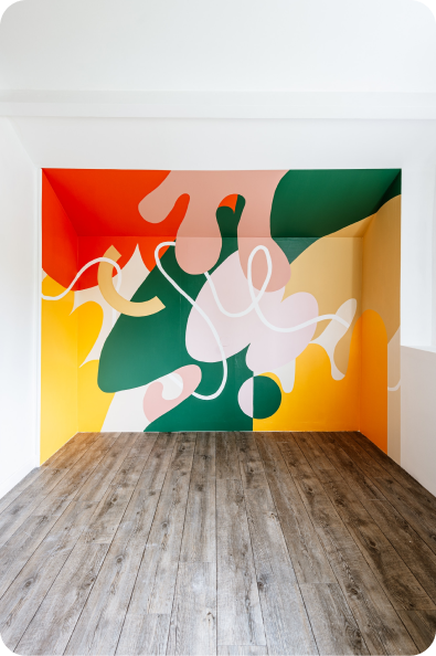 Pour cette fresque murale, l'objectif était de créer une œuvre à la fois fun, colorée et originale. L’idée a été de partir sur un style abstrait pour laisser place à l'interprétation personnelle de chaque mmemmbre de la famille. Le choix des couleurs a joué un rôle clé dans l'atmosphère de la pièce, en privilégiant des tons vifs et variés pour apporter une ambiance chaleureuse et lumineuse, et donner du caractère à l'espace.