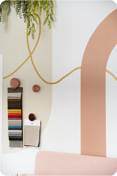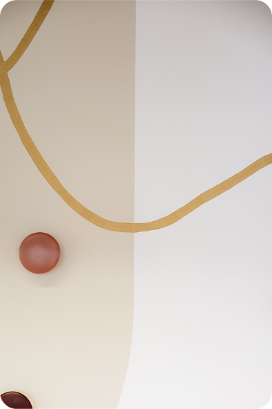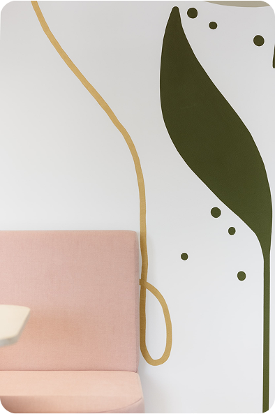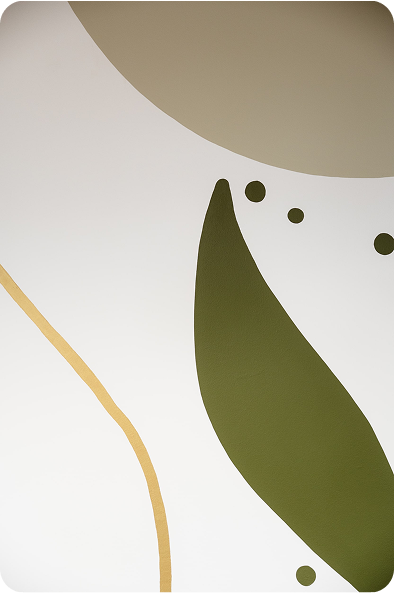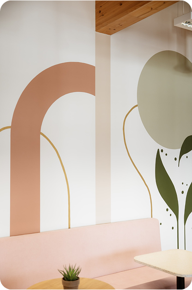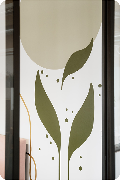 géométriques et organiques, en laissant des respirations sur le mur pour ne pas